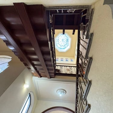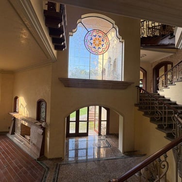 La residencia ofrece cuatro amplias habitaciones, elegantes espacios interiores, una majestuosa cúpula con vitrales, chimenea, así como una amplia cocina equipada con isla y barra de desayuno.