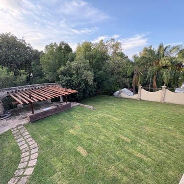 En el área exterior, un amplio jardín con terraza y asador crean el entorno ideal para convivencias familiares. Además, cuenta con dos balcones, elevador y un estacionamiento con capacidad para hasta 15 autos