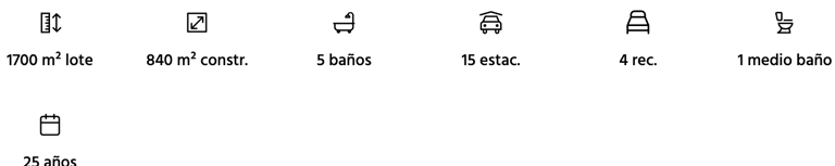 Con un terreno de 1,400 m² más 300 m² de donación y una construcción de 850 m², esta propiedad se distingue por su arquitectura de autor, materiales europeos de importación y finos acabados en forja española.