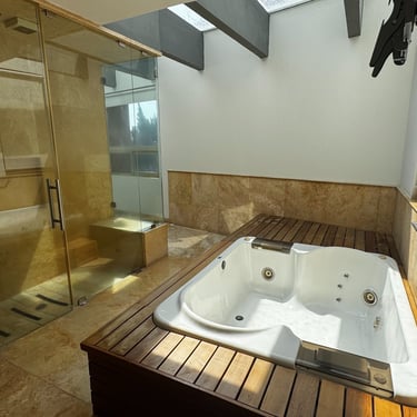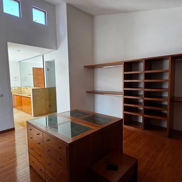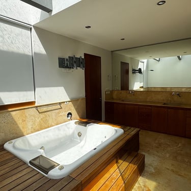 En planta alta dispone de estar de TV, 2 recámaras secundarias con baño y vestidor, y recámara principal con amplio vestidor, jacuzzi y vapor.