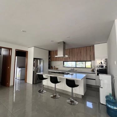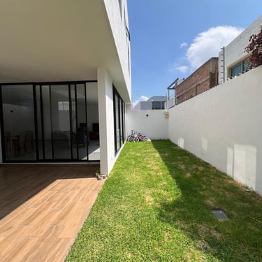 En planta baja cuenta con amplia sala y comedor con excelente iluminación, cocina equipada, medio baño, cuarto de lavado independiente y patio trasero ideal para reuniones o área de jardín.