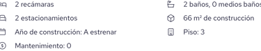 Ubicado en un desarrollo moderno, cuenta con 66.18 m², 2 recámaras, sala–comedor, cocina integral, 2 cajones de estacionamiento y acabados contemporáneos.